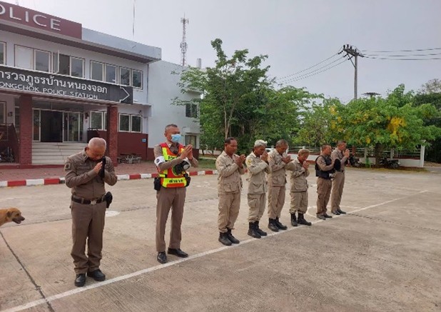 วันที่ 1 – 31 มีนาคม 2568  เวลา 08.00 น. พ.ต.ท.ธวัชชัย ประพันธมิตร สว.สภ.บ้านหนองจอก และ ด.ต.บำรุง คำกลาง ผบ.หมู่(ป.)สภ.บ้านหนองจอก เรียกรวมแถวหน้าเสาธง เพื่อเคารพธงชาติ สวดมนต์ไหว้พระ กล่าวอุดมคติตำรวจ และชี้แจงข้อราชการต่างๆ ดังนี้กำชับการปฏิบัติหน้าที่ให้มีความพร้อมอยู่เสมอตรวจความพร้อมก่อนออกปฏิบัติหน้าที่  เครื่องแต่งกาย อาวุธอุปกรณ์ประจำกาย และยานพาหนะออกตรวจเยี่ยมประชาชน ตามโครงการ Stop Walk and talkปฏิบัติตามแนวทาง การยกระดับการบริการประชาชนของสถานีตำรวจกำชับการปฏิบัติหน้าที่ ตามหลักยุทธวิธี ไม่ประมาทฝึกทบทวนยุทธวิธีตำรวจผู้รับผิดชอบกิจกรรม : พ.ต.ท.ธวัชชัย ประพันธมิตร สว.สภ.บ้านหนองจอก