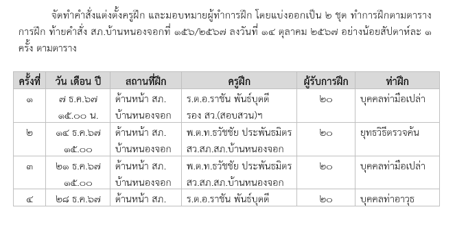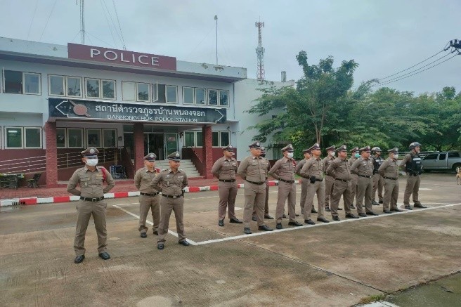 วันที่ 1-31 ธันวาคม 2567 เวลา 08.00 น. พ.ต.ท.ธวัชชัย ประพันธมิตร สว.สภ.บ้านหนองจอก และ ด.ต.สันติ พลเหลา ผบ.หมู่(ป.)สภ.บ้านหนองจอก เรียกรวมแถวหน้าเสาธง เพื่อเคารพธงชาติ สวดมนต์ไหว้พระ กล่าวอุดมคติตำรวจ และชี้แจงข้อราชการต่างๆ ดังนี้กำชับการปฏิบัติหน้าที่ให้มีความพร้อมอยู่เสมอตรวจความพร้อมก่อนออกปฏิบัติหน้าที่  เครื่องแต่งกาย อาวุธอุปกรณ์ประจำกาย และยานพาหนะออกตรวจจุดเสี่ยงจุดล่อแหลมในพื้นที่รับผิดชอบและบันทึกลงระบบ Police 4.0ออกตรวจเยี่ยมประชาชน ตามโครงการ Stop Walk and talkปฏิบัติตามแนวทาง การยกระดับการบริการประชาชนของสถานีตำรวจกำชับการปฏิบัติหน้าที่ ตามหลักยุทธวิธี ไม่ประมาทฝึกทบทวนยุทธวิธีตำรวจผู้รับผิดชอบกิจกรรม : พ.ต.ท.ธวัชชัย ประพันธมิตร สว.สภ.บ้านหนองจอก
