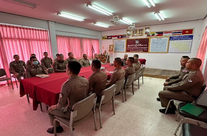วันที่ 26 มกราคม 2568 เวลา 10.30-11.00 น. พ.ต.ท.ธวัชชัย ประพันธมิตร สว.สภ.บ้านหนองจอก จัดอบรมให้ความรู้แก่ข้าราชการตำรวจตาม “โครงการพัฒนาองค์ความรู้แก่ข้าราชการตำรวจ สภ.บ้านหนองจอก ประจำปีงบประมาณ พ.ศ. 2568” ครั้งที่ 4/2568ในหัวข้อ ในหัวข้อ “ยุทธวิธีการตั้ง จุดตรวจ-จุดสกัด การตรวจค้นบุคคล ยานพาหนะ” เพื่อเตรียมความพร้อมในการปฏิบัติงาน ในการอำนวยความสะดวก ป้องกันและลดอุบัติเหตุทางถนนช่วงเทศกาลปีใหม่ พ.ศ. 2568 ณ ห้องประชุม ศปก.สภ.บ้านหนองจอก มีผู้เข้ารับการอบรม 27 นาย