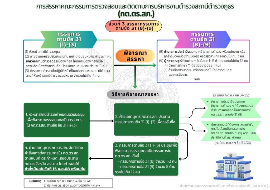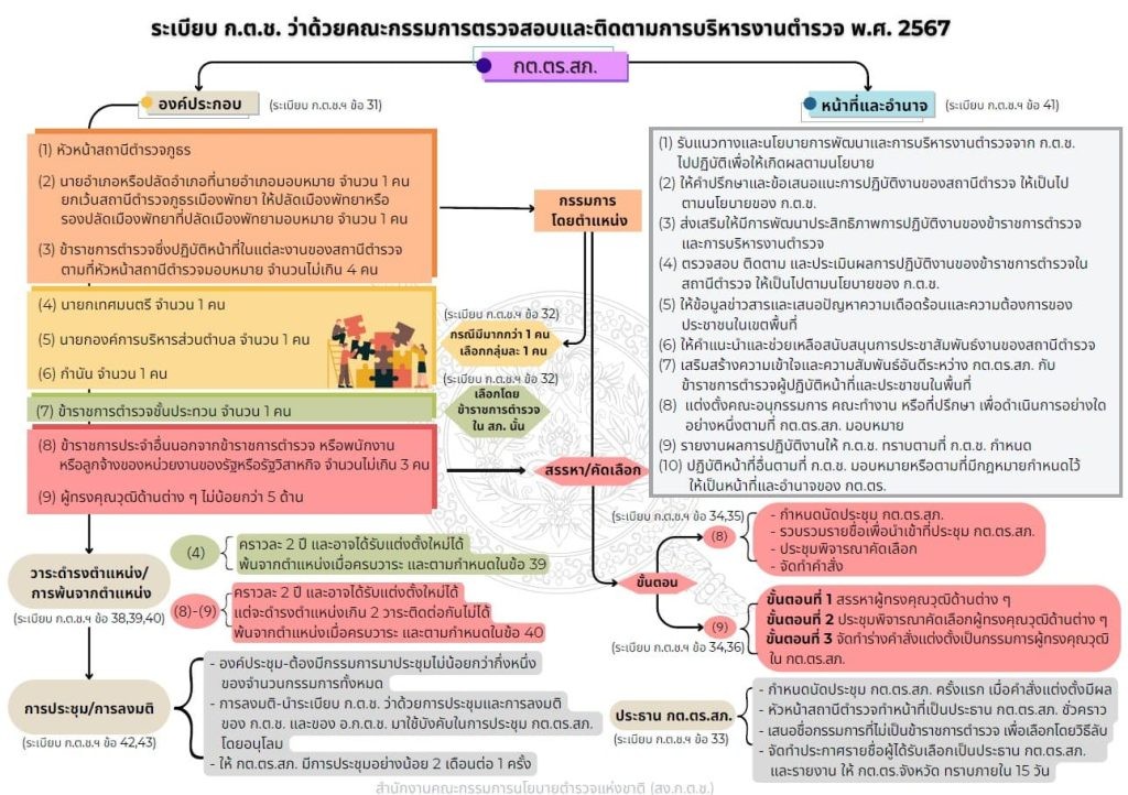 ระเบียบ ก.ต.ช. ว่าด้วยคณะกรรมการตรวจสอบและติดตามการบริหารงานตำรวจ (ฉบับที่ 3) พ.ศ.2551 ข้อ 20 ให้ กต.ตร.สน. หรือ กต.ตร.สภ. มีอำนาจ หน้าที่ดังต่อไปนี้